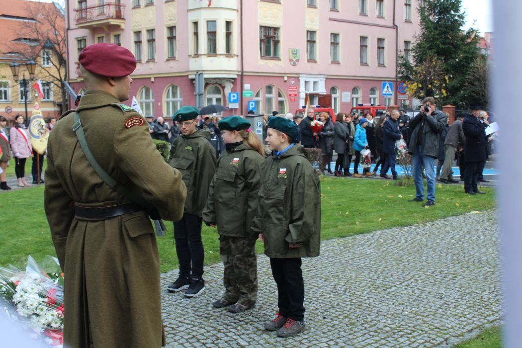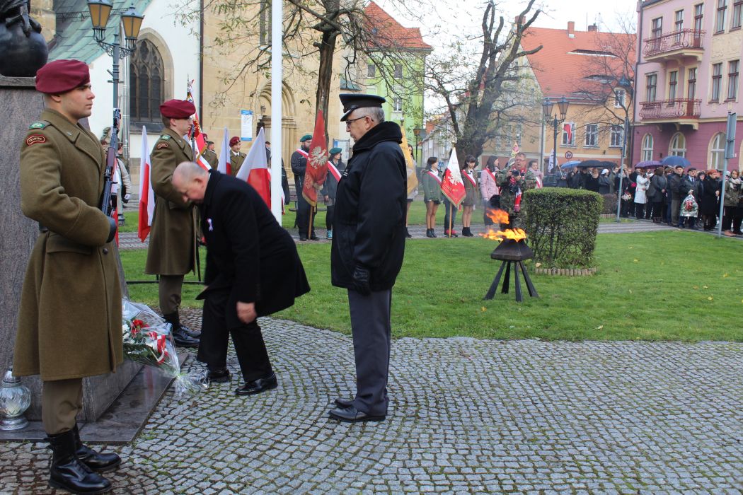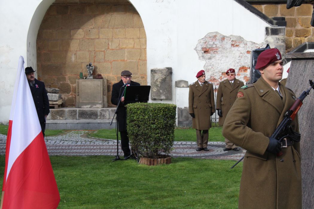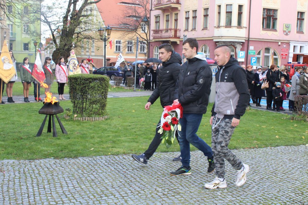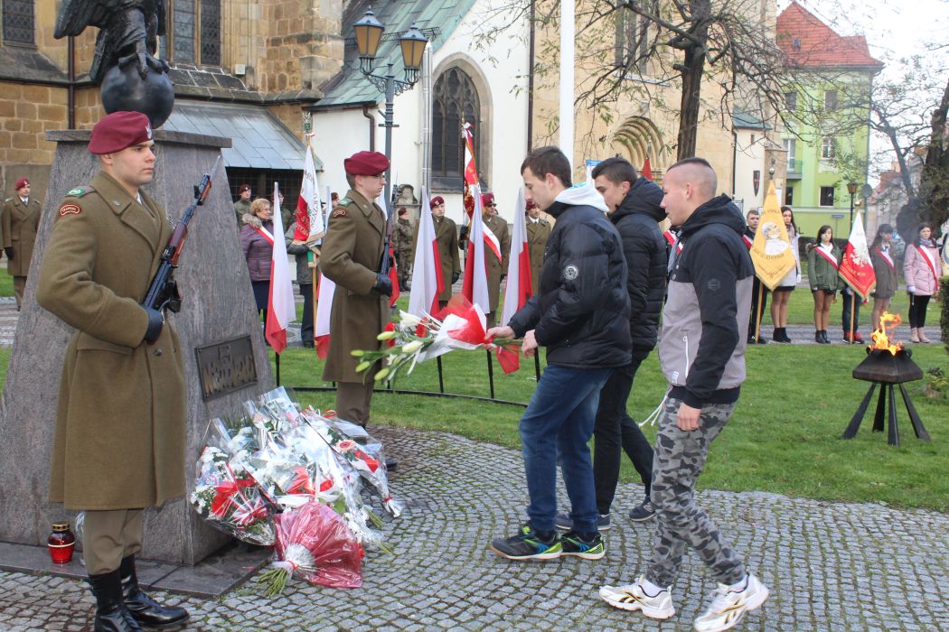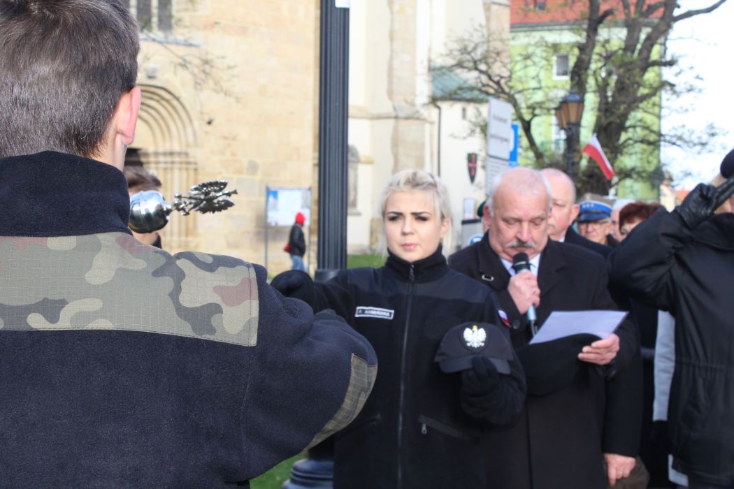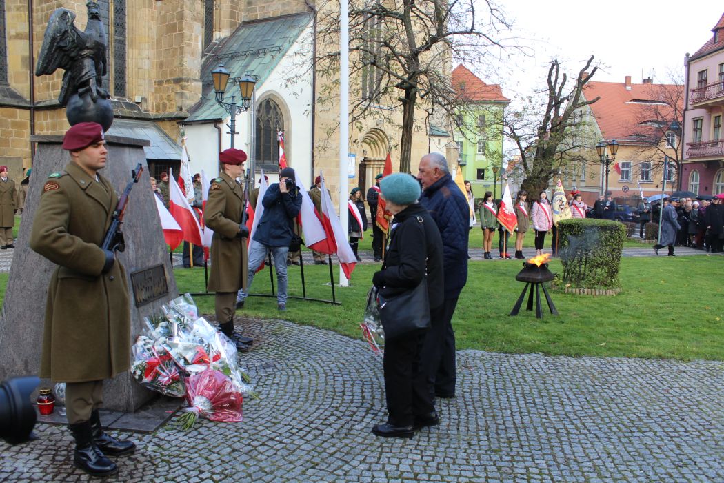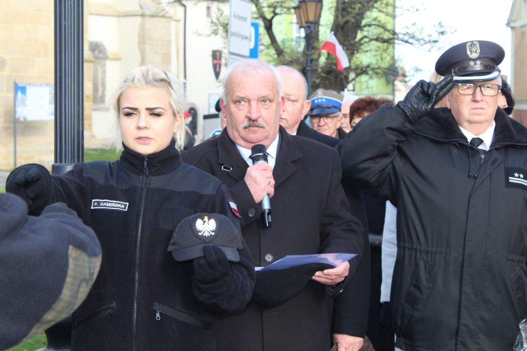 Starosta złotoryjski Ryszard Raszkiewicz w okolicznościowym przemówieniu przypomniał w kilku zdaniach historyczne okoliczności, w jakich nasz kraj blisko sto lat temu odzyskał niepodległość. Przytoczył również słynne słowa marszałka Józefa Piłsudskiego: – Naród, który nie szanuje swej przeszłości nie zasługuje na szacunek teraźniejszości i nie ma prawa do przyszłości.