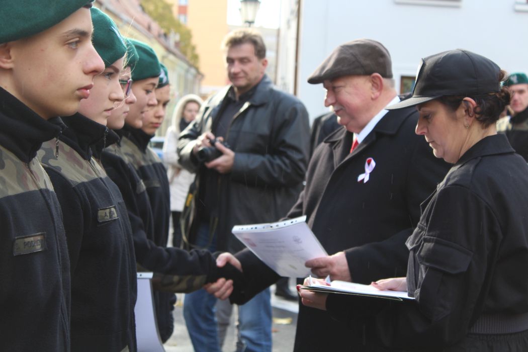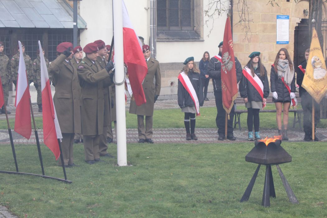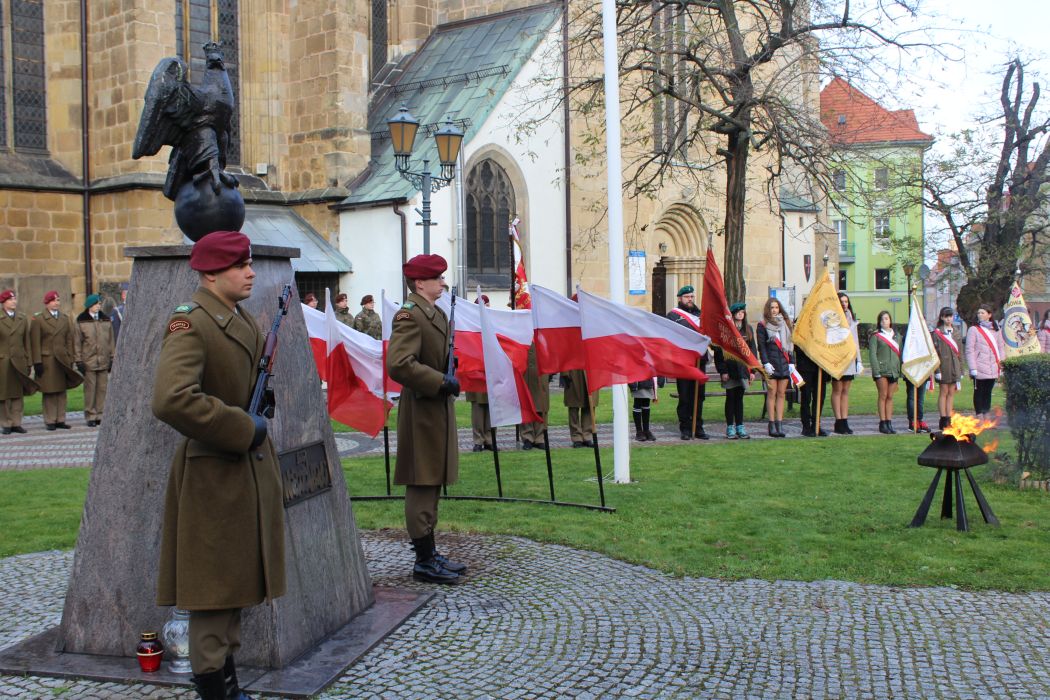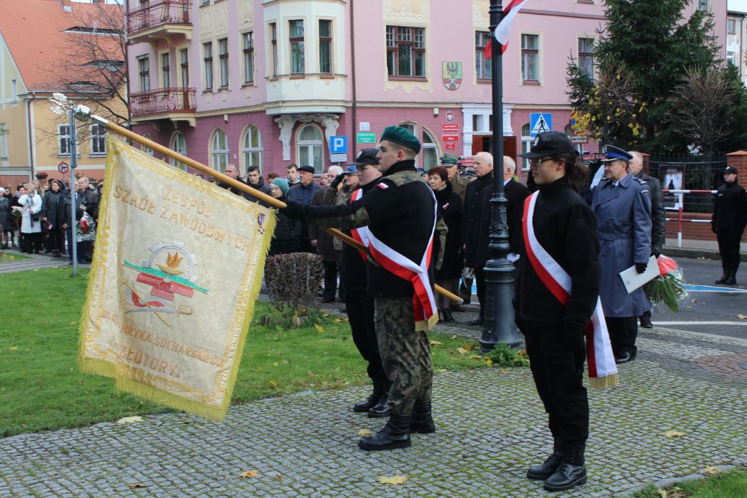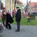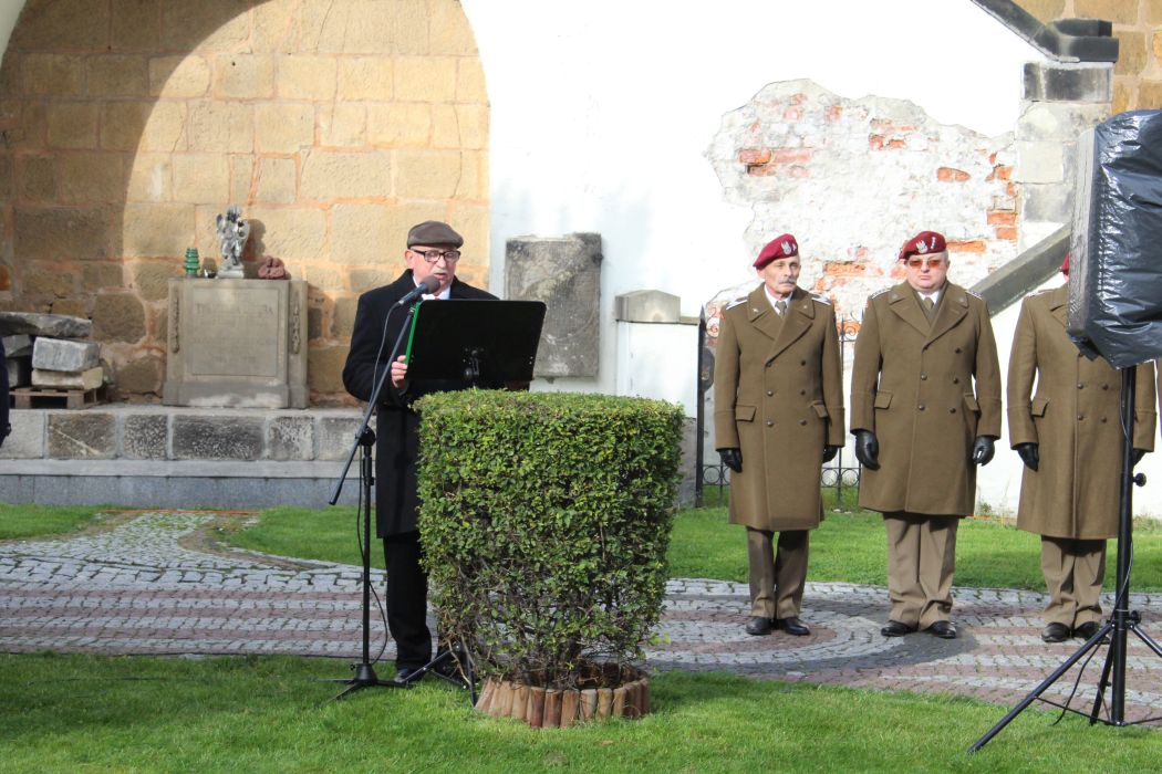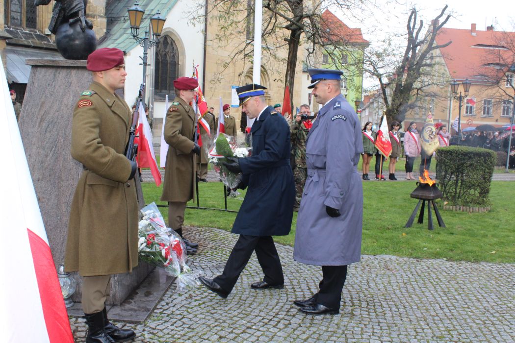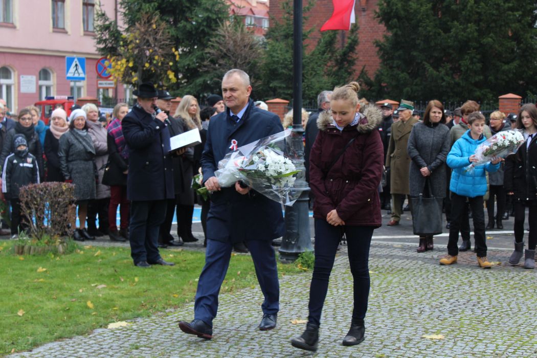 Starosta złotoryjski Ryszard Raszkiewicz w okolicznościowym przemówieniu przypomniał w kilku zdaniach historyczne okoliczności, w jakich nasz kraj blisko sto lat temu odzyskał niepodległość. Przytoczył również słynne słowa marszałka Józefa Piłsudskiego: – Naród, który nie szanuje swej przeszłości nie zasługuje na szacunek teraźniejszości i nie ma prawa do przyszłości.