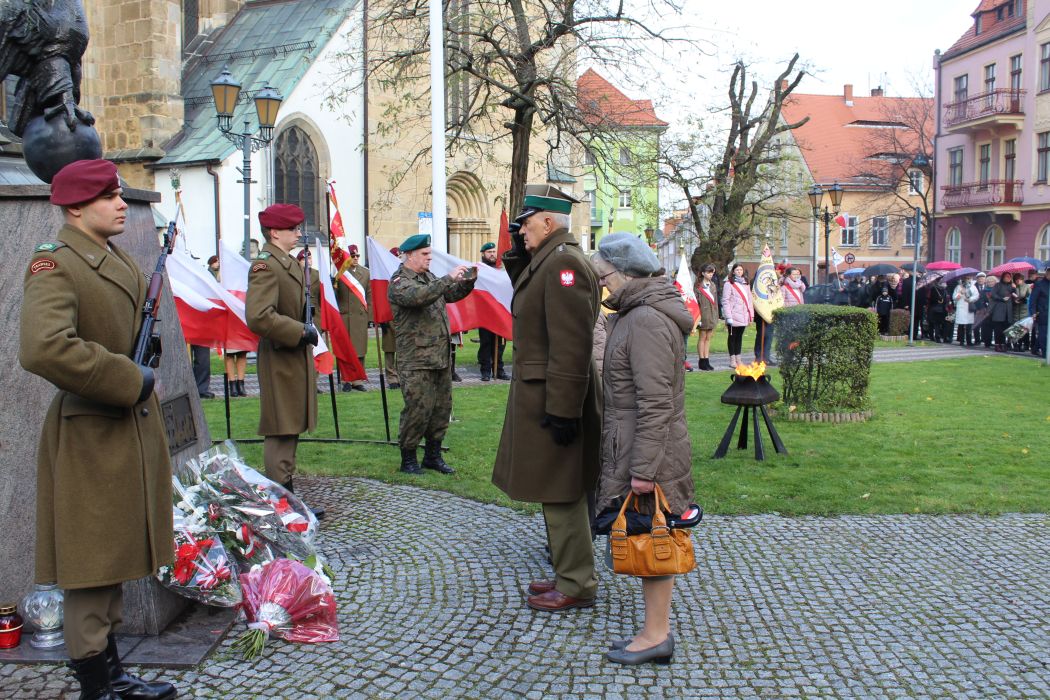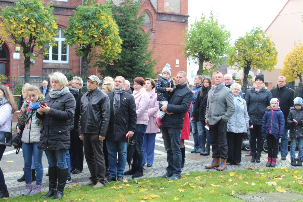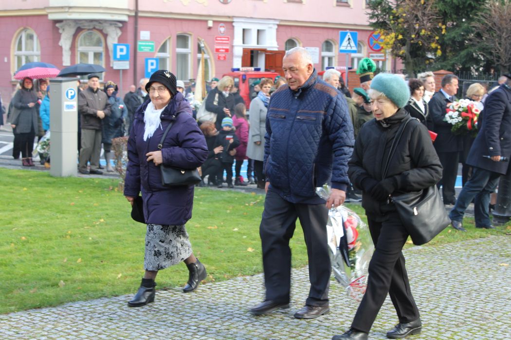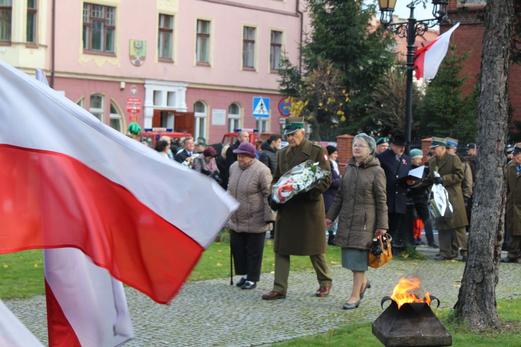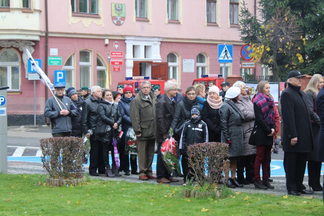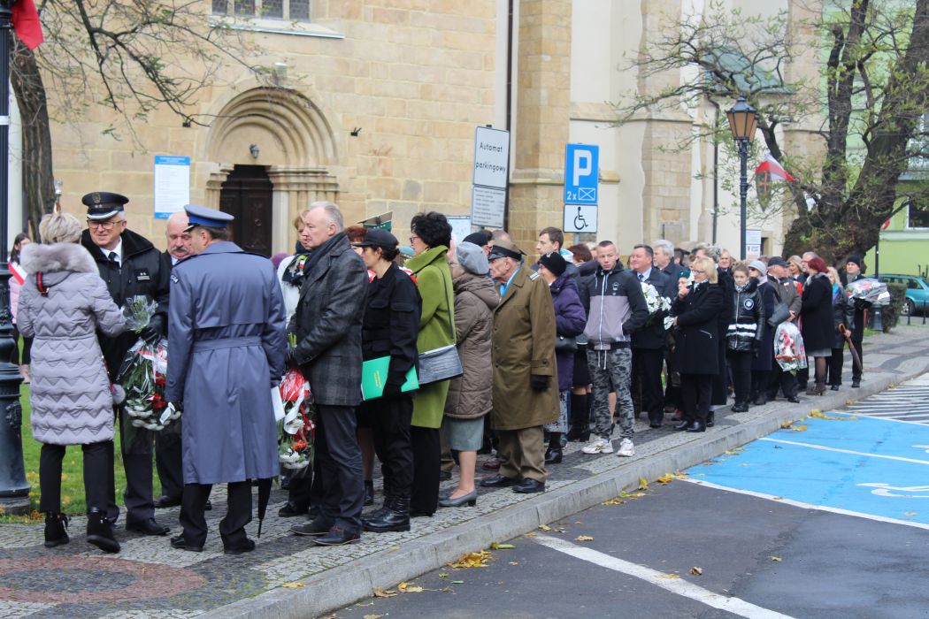 Przed kościół pw. Narodzenia Najświętszej Maryi Panny przybyło mnóstwo delegacji, aby złożyć kwiaty pod pomnikiem Niepodległości. W uroczystości wzięli udział przedstawiciele szkół i przedszkoli z powiatu złotoryjskiego, lokalnych władz samorządowych, a także wielu stowarzyszeń, instytucji i przedsiębiorców. Obchody rocznicowe tradycyjnie rozpoczęły się wciągnięciem flagi państwowej na maszt i odegraniem „Mazurka Dąbrowskiego”, zakończyły natomiast „Rotą”.