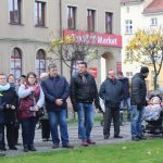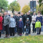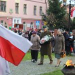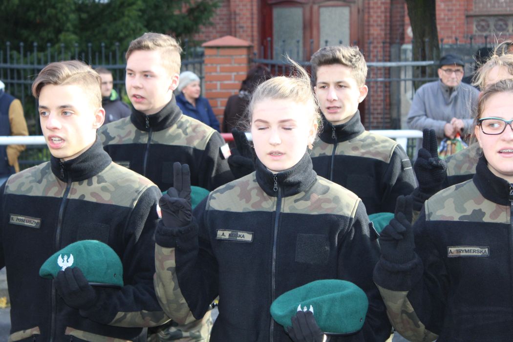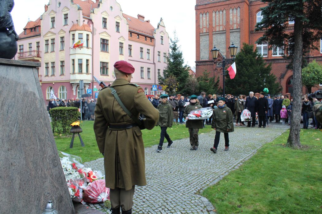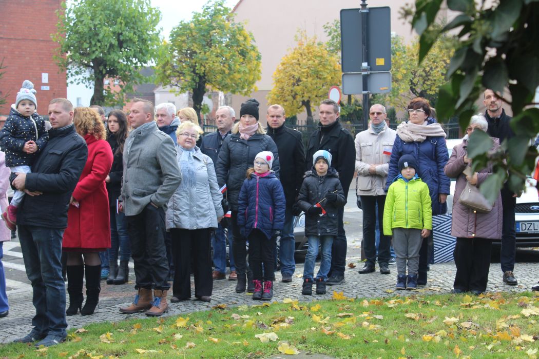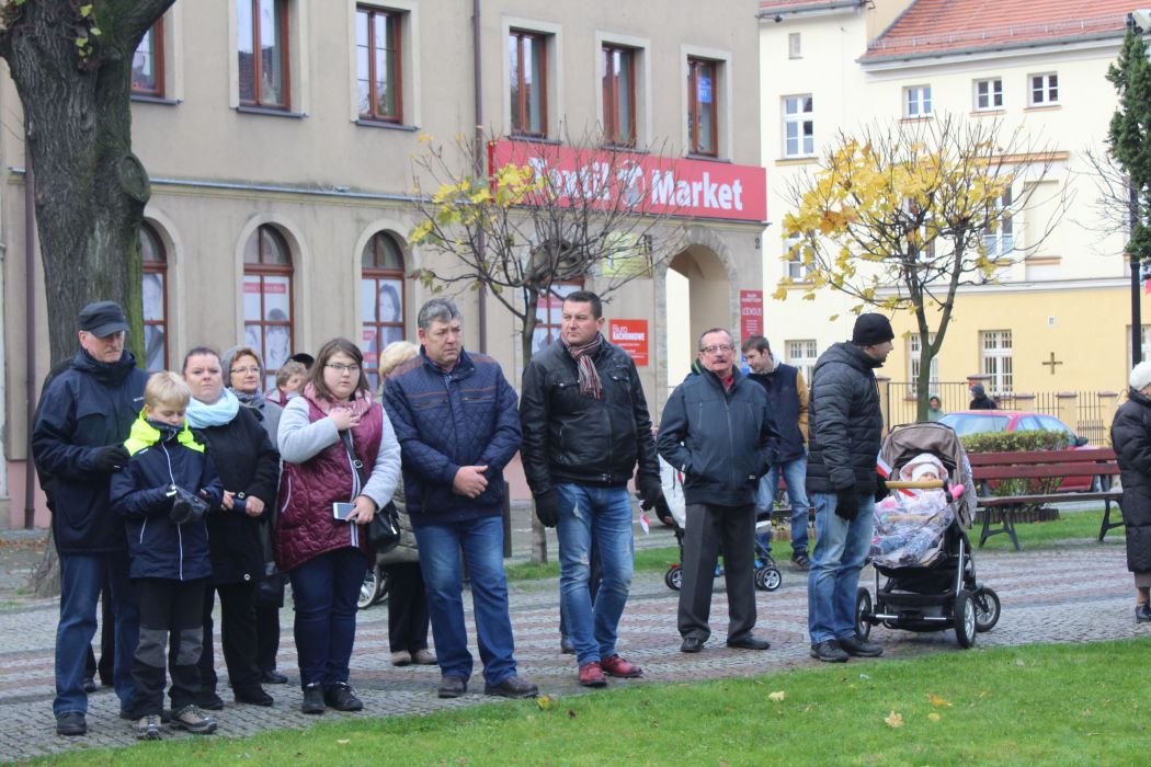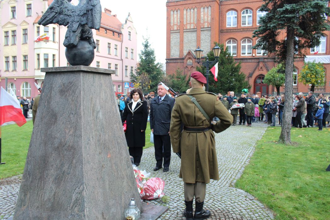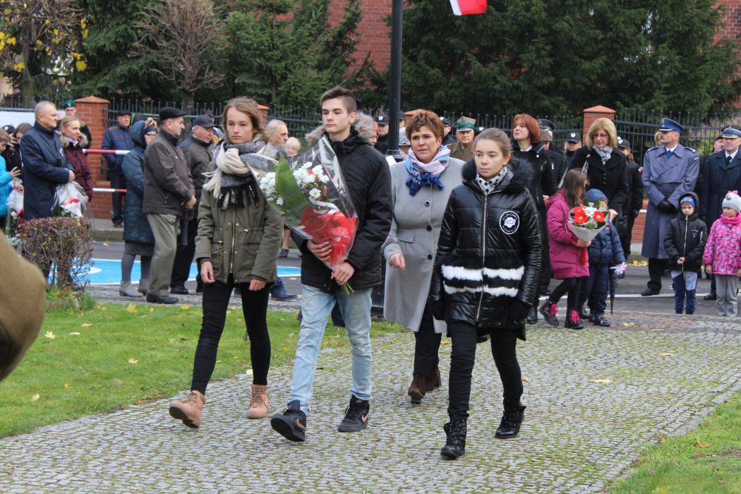 Przed kościół pw. Narodzenia Najświętszej Maryi Panny przybyło mnóstwo delegacji, aby złożyć kwiaty pod pomnikiem Niepodległości. W uroczystości wzięli udział przedstawiciele szkół i przedszkoli z powiatu złotoryjskiego, lokalnych władz samorządowych, a także wielu stowarzyszeń, instytucji i przedsiębiorców. Obchody rocznicowe tradycyjnie rozpoczęły się wciągnięciem flagi państwowej na maszt i odegraniem „Mazurka Dąbrowskiego”, zakończyły natomiast „Rotą”.