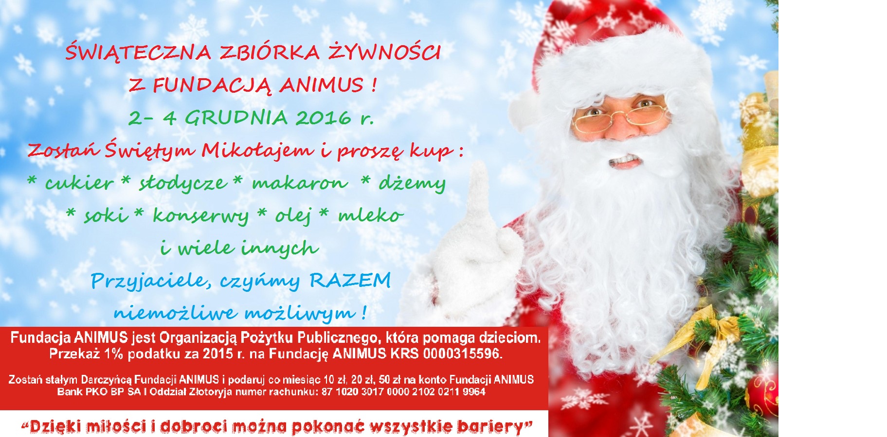ulotka-2Od dziś do 4 grudnia potrwa kolejna edycja akcji „Świąteczna zbiórka żywności z Fundacją Animus”. W organizacji złotoryjskiego przedsięwzięcia pomagają wolontariusze, harcerze oraz uczniowie z Zespołu Szkół Zawodowych oraz Zespołu Szkół Miejskich.