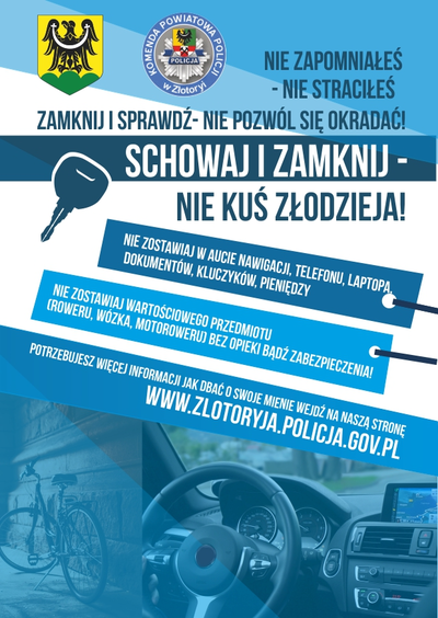 W ramach prowadzonych działań profilaktycznych zaprojektowano ulotki prewencyjne o treści przypominającej mieszkańcom powiatu jak dbać o własne dobra materialne. Ulotki zostały zakupione przez Starostwo Powiatowe w Złotoryi.