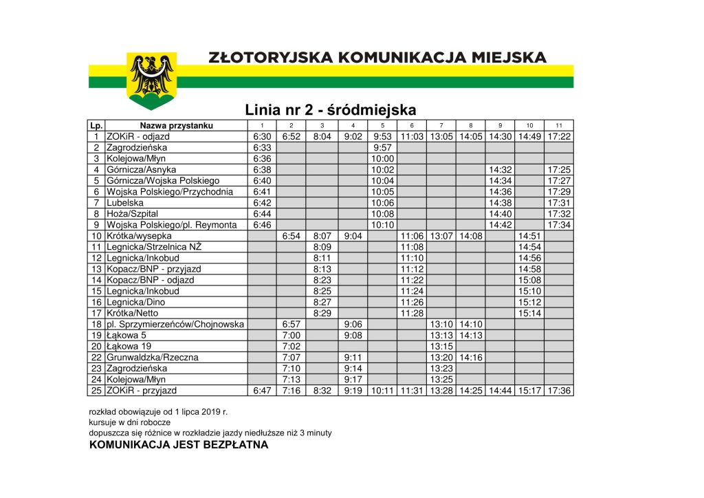 Na dwóch pozostałych liniach (nr 1 i nr 2) wykreślone zostały niektóre kursy, które cieszyły się bardzo słabym zainteresowaniem. – Dostosowujemy cały czas rozkład jazdy do oczekiwań pasażerów i obłożenia poszczególnych kursów. Stale monitorujemy przepływ pasażerów, otrzymujemy również raporty od kierowców PKS-u. Wynika z nich, że zdarzają się obecnie kursy, gdy autobusy jeżdżą puste. Chodzi głównie o godziny popołudniowe. Stąd korekta rozkładu – tłumaczy Paweł Kochanowski, naczelnik Wydziału Obsługi Urzędu w Urzędzie Miejskim w Złotoryi.