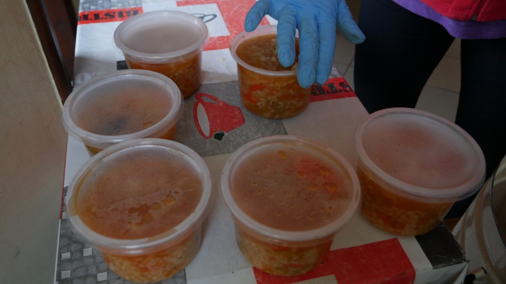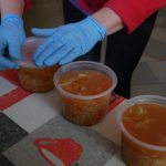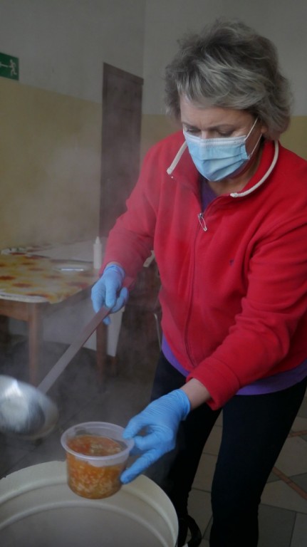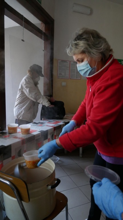 Pierwszego dnia wydawana była zupa jarzynowa. Kucharki ugotowały jej ponad 50 litrów. Otrzymał ją każdy potrzebujący w jednorazowych naczyniach. Podczas wydawania posiłków zachowane są wymogi bezpieczeństwa, obowiązujące podczas pandemii.